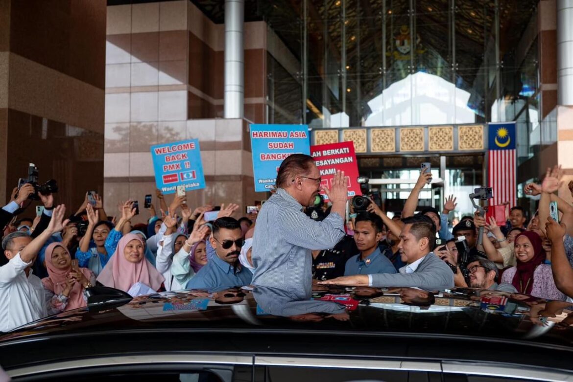 Ketibaan Anwar dan delegasi disambut Menteri Pelancongan, Seni dan Budaya Datuk Seri Tiong King Sing, Menteri Komunikasi dan Digital Fahmi Fadzil dan Menteri Pendidikan Fadhlina Sidek serta para penyokong.