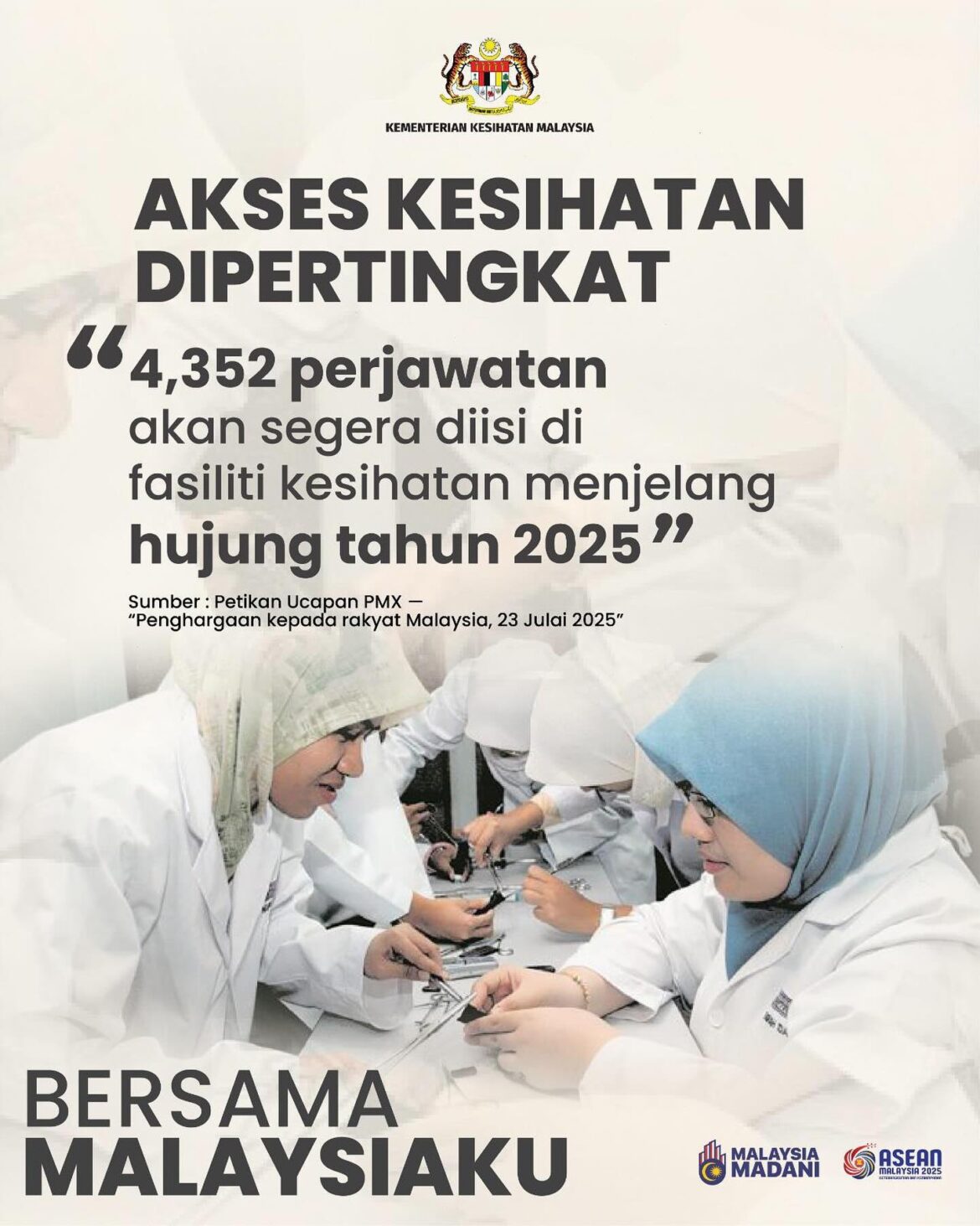 Terdahulu, dalam pengumuman khas yang disiarkan secara langsung di televisyen, Perdana Menteri mengumumkan bahawa kerajaan akan mengisi 4,352 kekosongan jawatan doktor tahun ini, termasuk bagi pegawai perubatan kontrak.