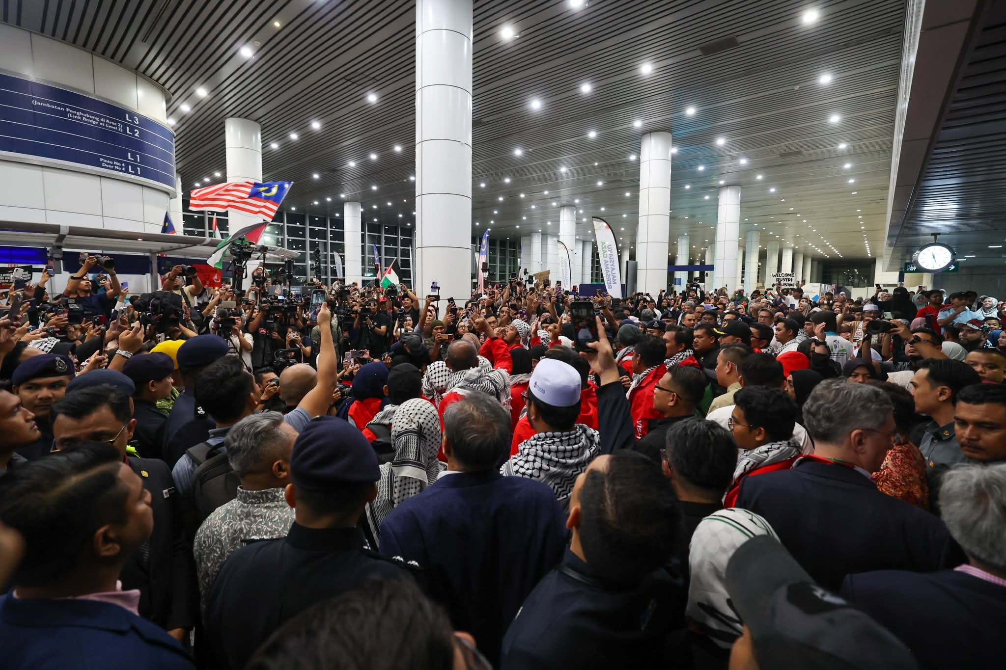 Turut hadir menyambut kepulangan mereka ialah Menteri Luar Negeri, Datuk Seri Mohamad Hasan; Menteri Besar Selangor, Datuk Seri Amirudin Shari; Presiden MAPIM, Azmi Abdul Hamid; serta Mufti Wilayah, Ahmad Fauwaz Fadzil yang membacakan doa kesyukuran.