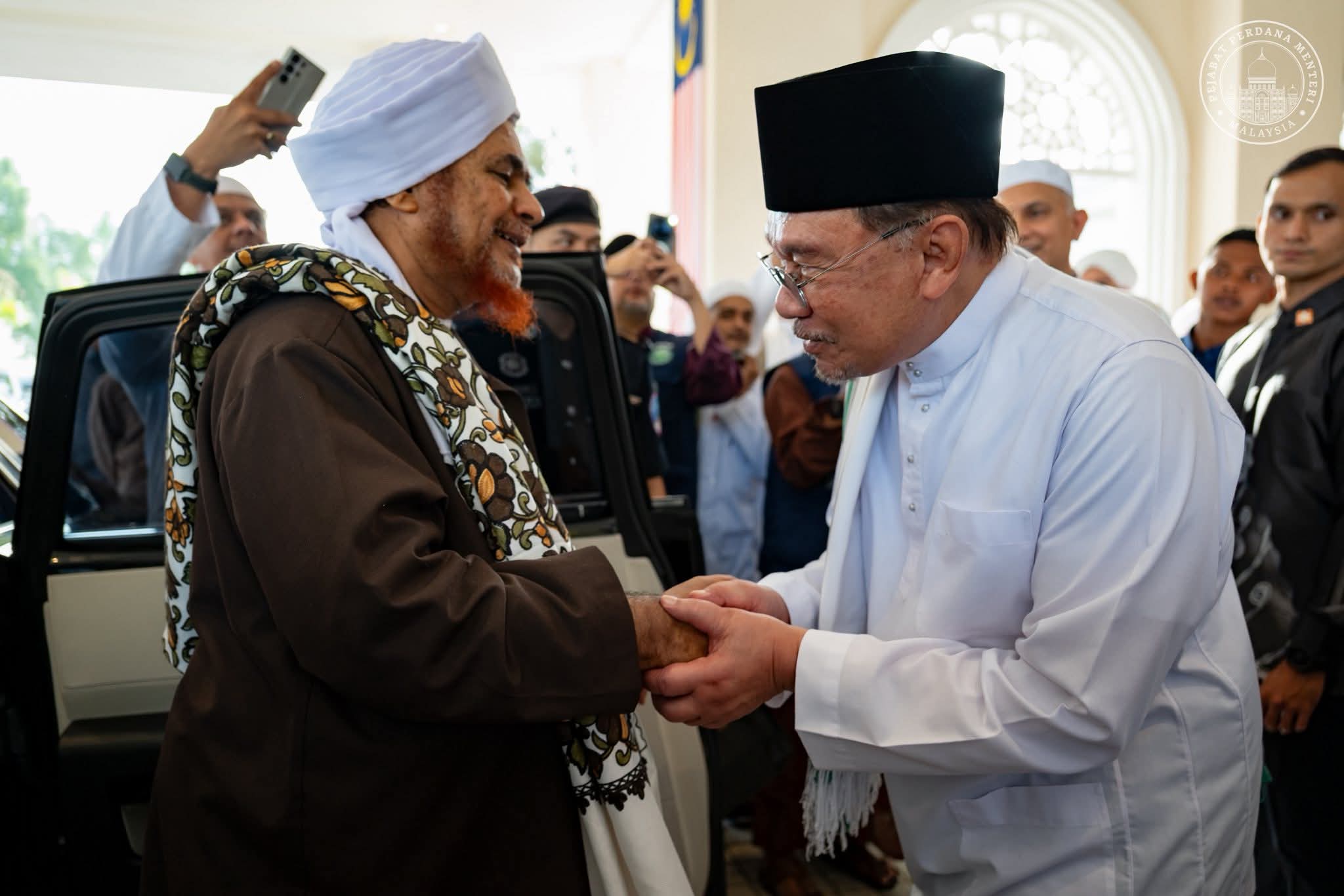 PUTRAJAYA: Perdana Menteri, Datuk Seri Anwar Ibrahim, menyerahkan naskhah Mushaf Tarim Riwayat ad-Duri ‘an Abi Amr wa al-Basr kepada ulama tersohor dunia Islam, Al-Habib Umar bin Muhammad bin Salim Ben Hafez, sebagai tanda penghargaan terhadap peranan beliau dalam penyebaran ilmu dan dakwah Islam di peringkat global.