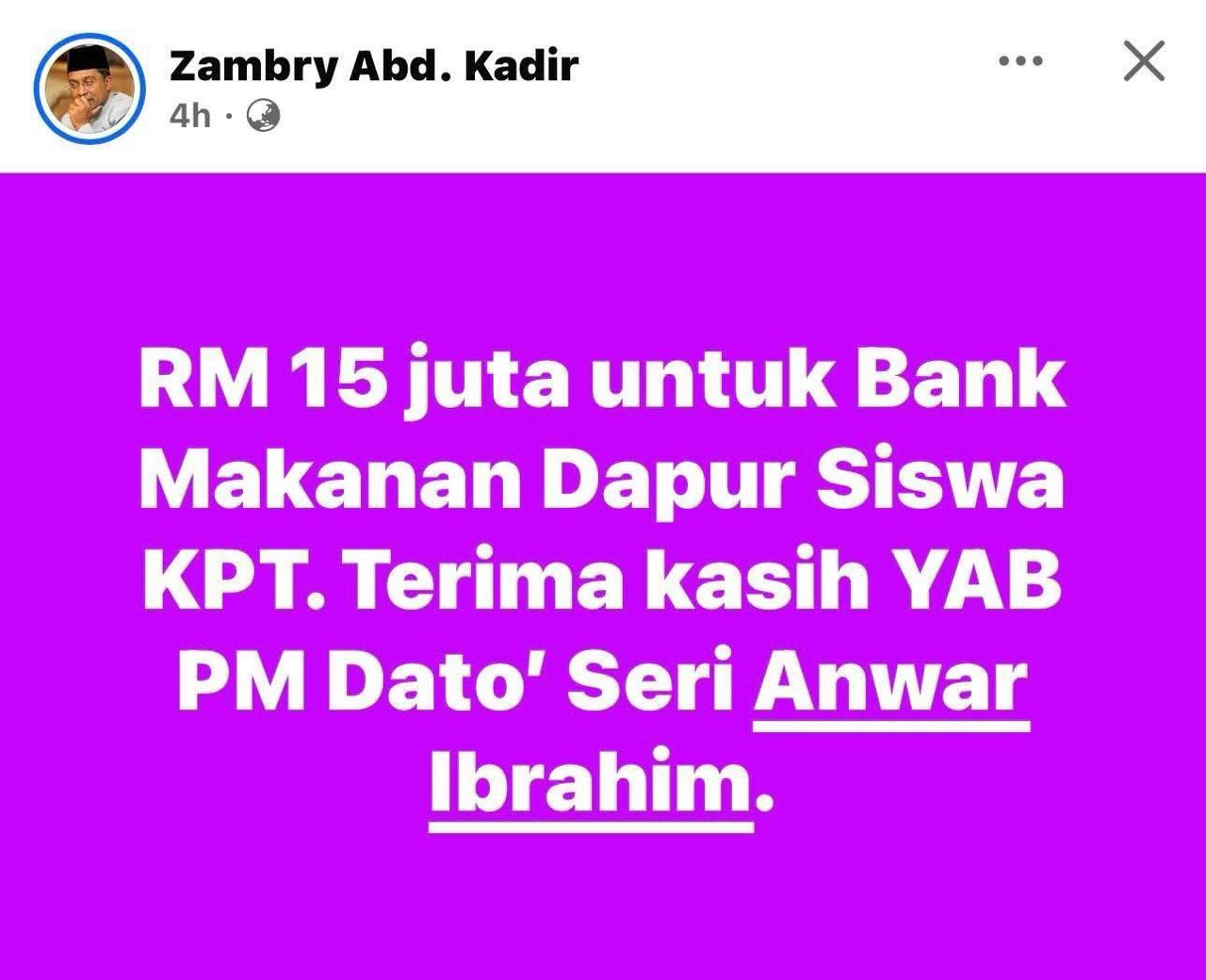 ALOR SETAR – Gabungan Pelajar Melayu Semenanjung (GPMS) Kedah menyatakan sokongan penuh terhadap langkah Perdana Menteri, Dato’ Seri Anwar Ibrahim, yang memperuntukkan sebanyak RM15 juta kepada program Bank Makanan Dapur Siswa di bawah Kementerian Pendidikan Tinggi (KPT.